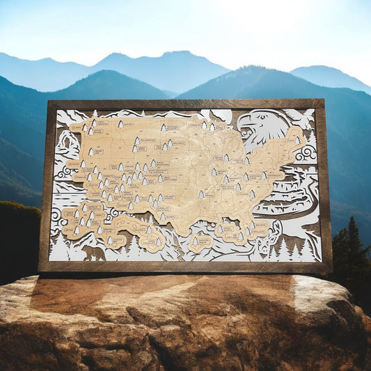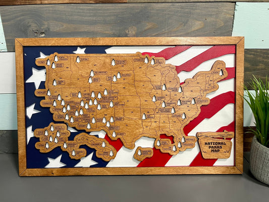 Custom US National Park Travel Map— Wall Decor, Shelf Decor, USA travel Map- Anniversary Gift- Fathers Day- Mothers Day- Housewarming gift